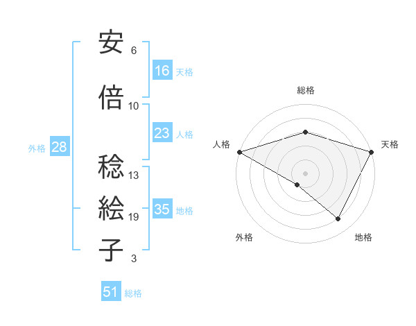安倍 稔絵子さんの総格は51画の3点!