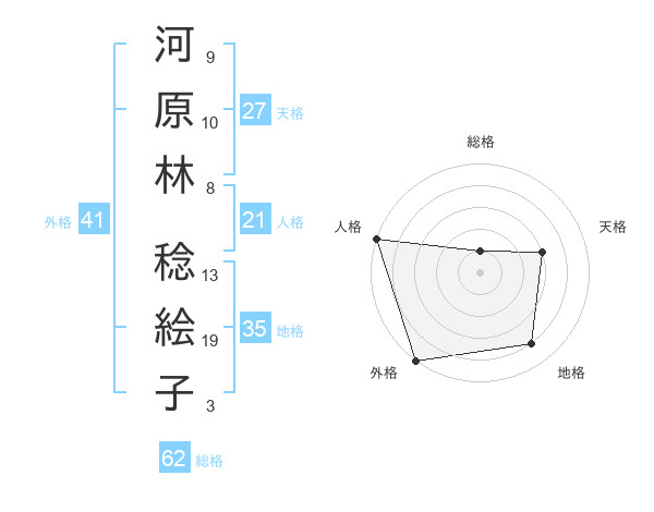 河原林 稔絵子さんを姓名の画数から五運を鑑定