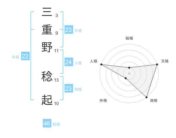 三重野 稔起さんの外格は22画の1点!