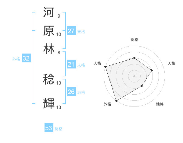 河原林 稔輝さんを姓名の画数から五運を鑑定