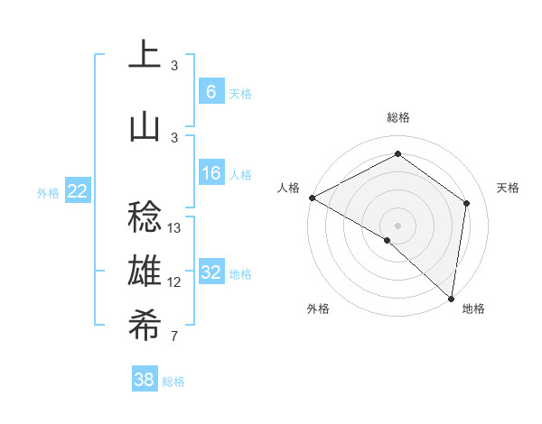 上山 稔雄希さんを姓名の画数から五運を鑑定