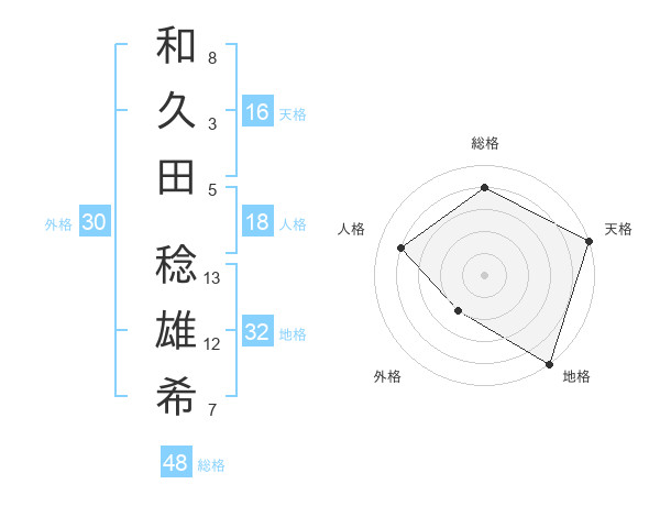 和久田 稔雄希さんを姓名の画数から五運を鑑定