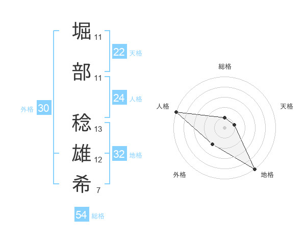 堀部 稔雄希さんを姓名の画数から五運を鑑定