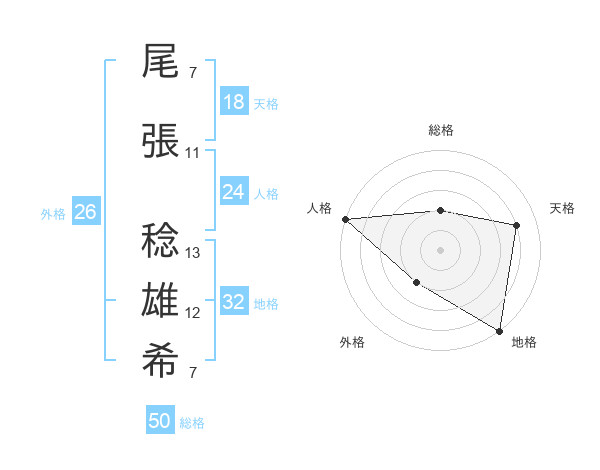 尾張 稔雄希さんを姓名の画数から五運を鑑定