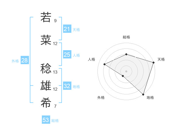 若菜 稔雄希さんを姓名の画数から五運を鑑定