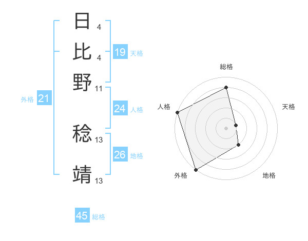 日比野 稔靖さんの総格は45画の4点!