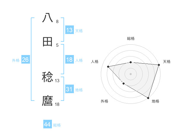 八田 稔麿さんを姓名の画数から五運を鑑定