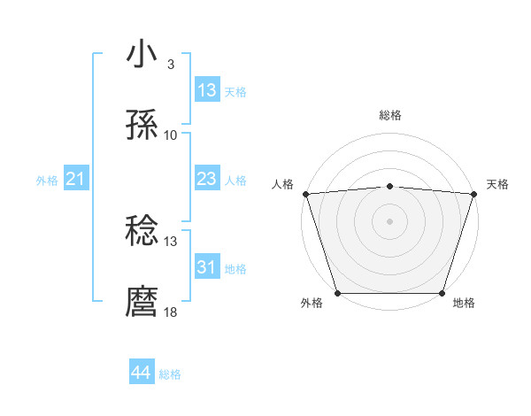 小孫 稔麿さんの総格は44画の2点!