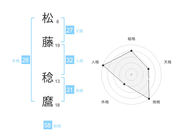 松藤 稔麿さんを姓名の画数から五運を鑑定