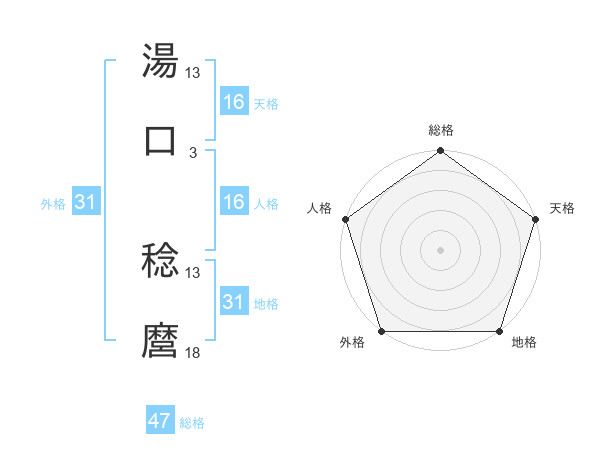 湯口 稔麿さんを姓名の画数から五運を鑑定