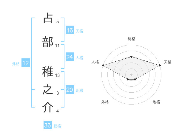 占部 稚之介さんの天格は16画の5点!