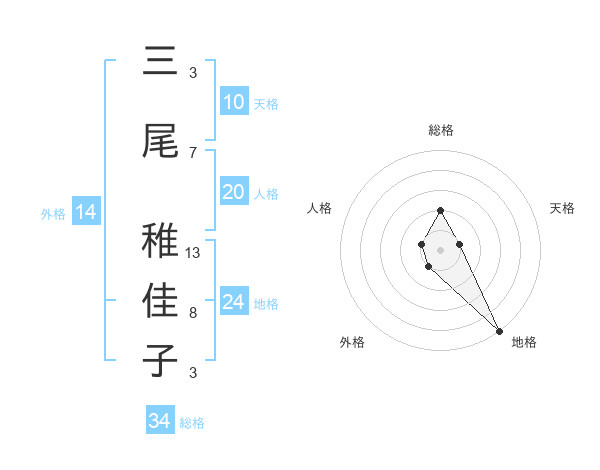 三尾 稚佳子さんを姓名の画数から五運を鑑定