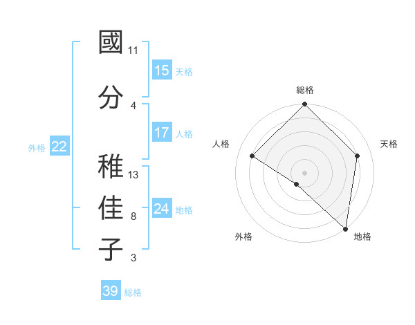 國分 稚佳子さんを姓名の画数から五運を鑑定