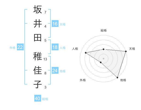 坂井田 稚佳子さんを姓名の画数から五運を鑑定