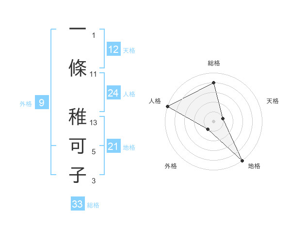 一條 稚可子さんを姓名の画数から五運を鑑定
