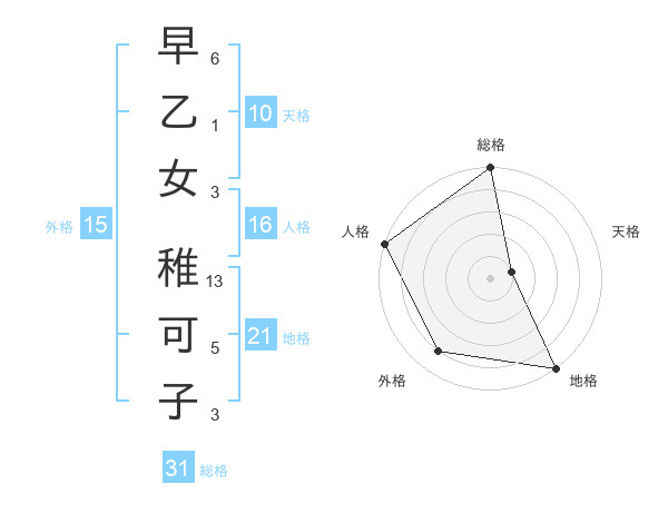 早乙女 稚可子さんの総格は31画の5点!