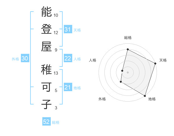 能登屋 稚可子さんの総格は52画の4点
