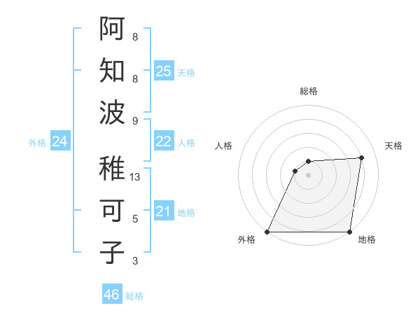 阿知波 稚可子さんを姓名の画数から五運を鑑定