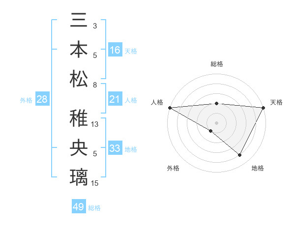三本松 稚央璃さんを姓名の画数から五運を鑑定