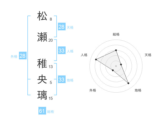 松瀬 稚央璃さんを姓名の画数から五運を鑑定