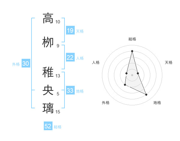 高栁 稚央璃さんを姓名の画数から五運を鑑定