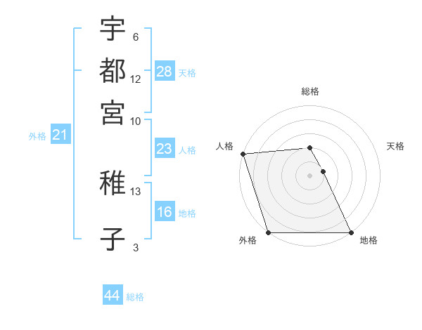 宇都宮 稚子さんを姓名の画数から五運を鑑定