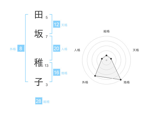 田坂 稚子さんを姓名の画数から五運を鑑定