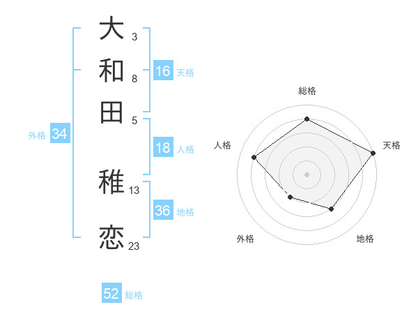 大和田 稚恋さんの外格は34画の2点!