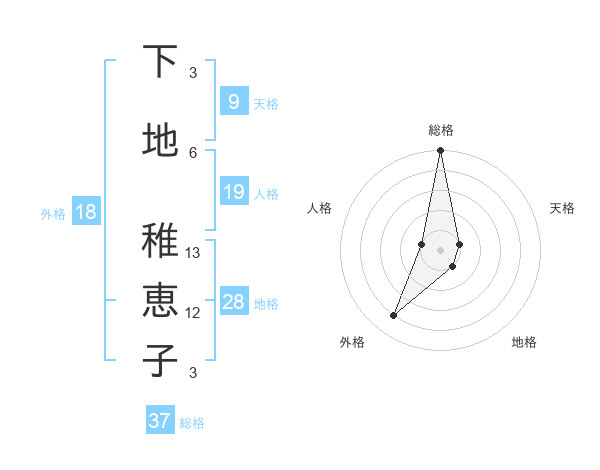 下地 稚恵子さんの総格は37画の5点!
