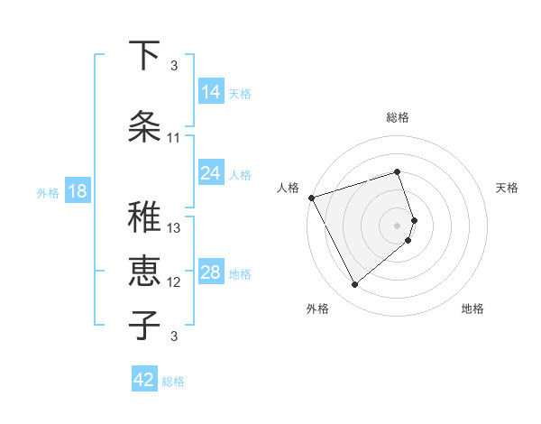 下条 稚恵子さんを姓名の画数から五運を鑑定