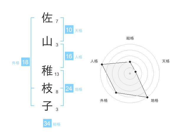佐山 稚枝子さんを姓名の画数から五運を鑑定