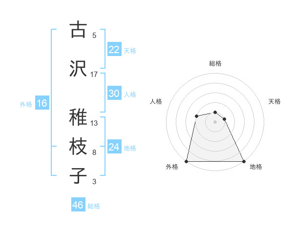 古沢 稚枝子さんの天格は22画の1点!