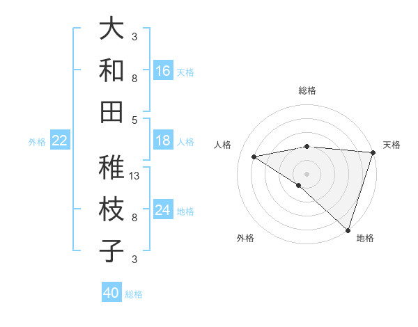 大和田 稚枝子さんを姓名の画数から五運を鑑定