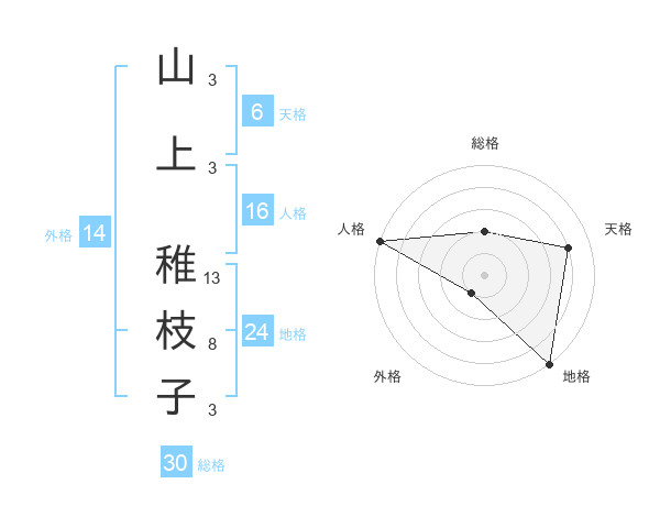 山上 稚枝子さんを姓名の画数から五運を鑑定