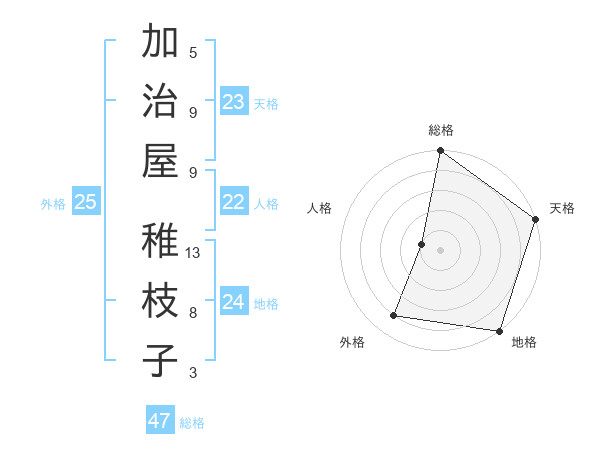 加治屋 稚枝子さんの総格は47画の5点!