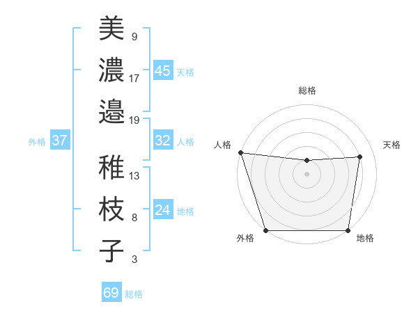美濃邉 稚枝子さんの外格は37画の5点