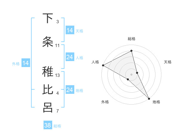 下条 稚比呂さんを姓名の画数から五運を鑑定