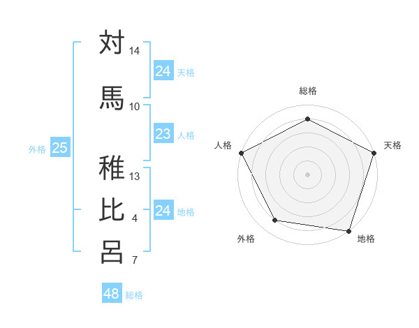 対馬 稚比呂さんを姓名の画数から五運を鑑定