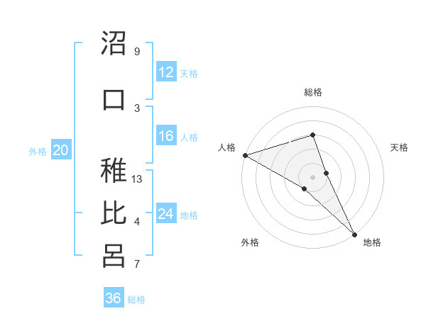 沼口 稚比呂さんを姓名の画数から五運を鑑定
