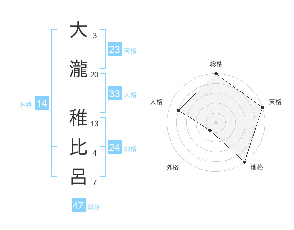 大瀧 稚比呂さんの総格は47画の5点!