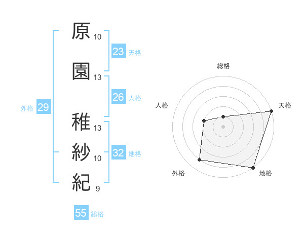 原園 稚紗紀さんの総格は55画の1点!