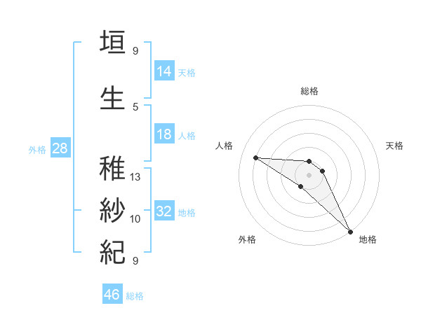 垣生 稚紗紀さんを姓名の画数から五運を鑑定