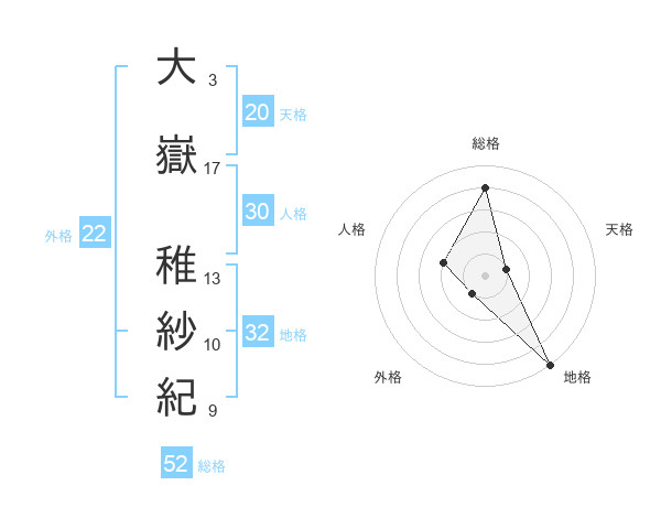 大嶽 稚紗紀さんを姓名の画数から五運を鑑定