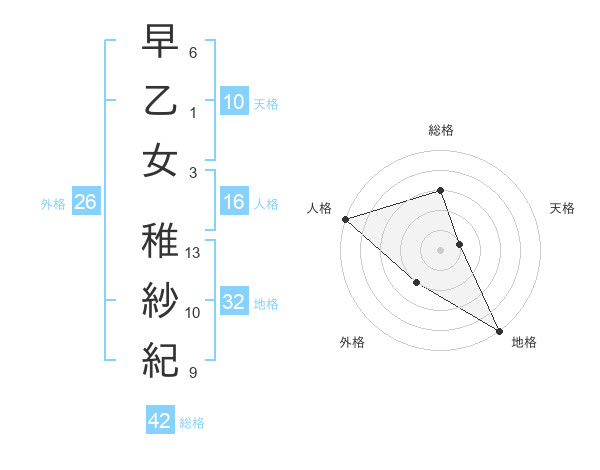 早乙女 稚紗紀さんを姓名の画数から五運を鑑定