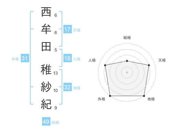 西牟田 稚紗紀さんを姓名の画数から五運を鑑定