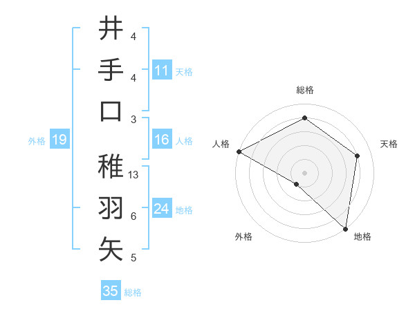 井手口 稚羽矢さんを姓名の画数から五運を鑑定