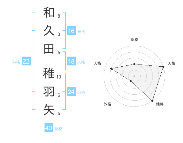 和久田 稚羽矢さんを姓名の画数から五運を鑑定