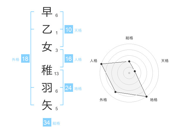 早乙女 稚羽矢さんを姓名の画数から五運を鑑定
