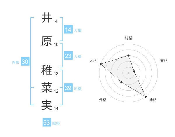 井原 稚菜実さんを姓名の画数から五運を鑑定