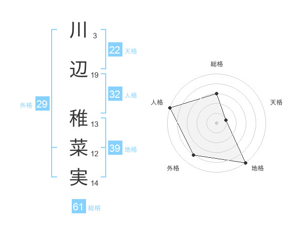 川辺 稚菜実さんを姓名の画数から五運を鑑定